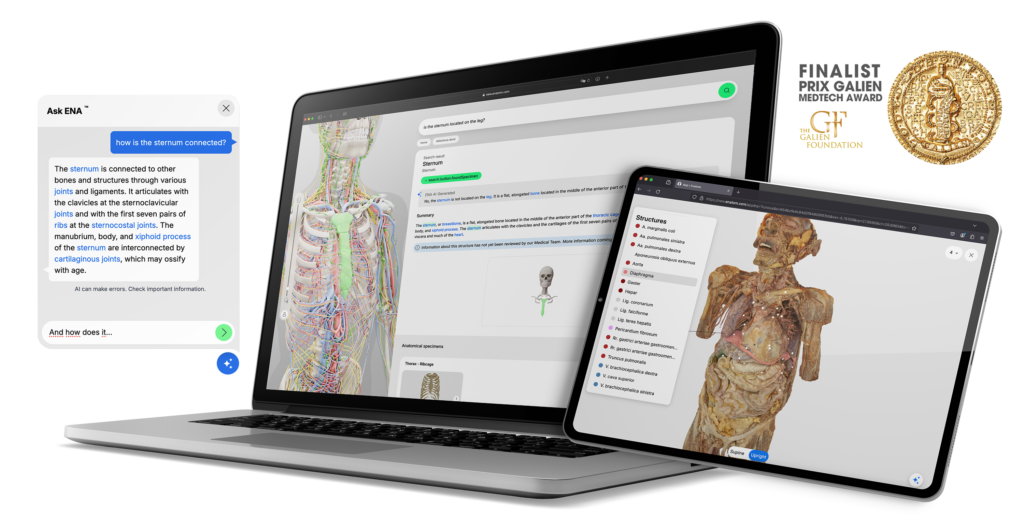Students use Enatom to prepare for exams and build real understanding. They can explore the human body in detail, follow guided playlists, test themselves with quizzes, and ask questions when they’re stuck.
